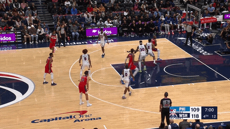 大帝的个人效率很高,但是球队一度落后奇才19分。时间耗尽的大帝只能在替补席上旁观并相信球队逆转的过程,76人在第四节最后时刻追平比分,并最终赢下加时。